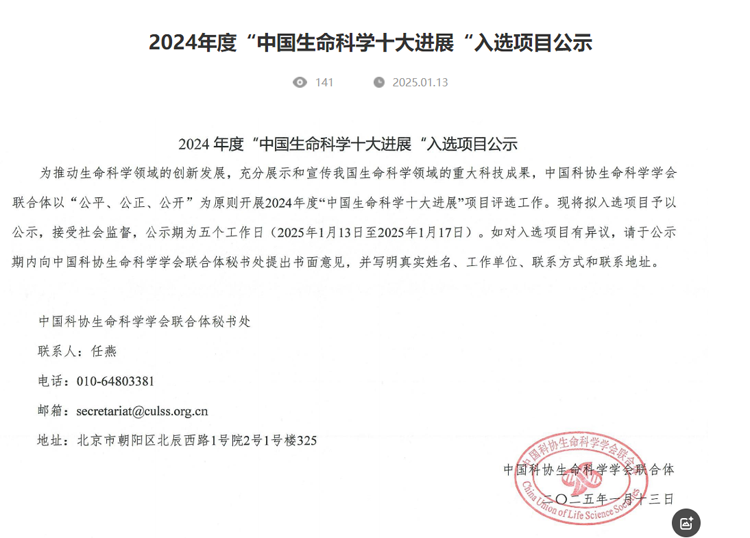 重磅|凈信多樣品組織研磨儀助力科學家獲得2024年度中國生命科學十大進展”