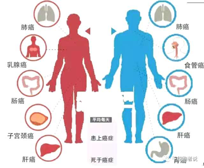 在我國,癌細胞最頻繁“光顧”的人體組織,位居男性發病率前十位的分別是,肺、胃、肝、食管、大腸癌、膀胱、胰腺、腦、淋巴、腎;女性為肺、乳腺、大腸、胃、肝、食管、卵巢、宮頸、胰腺、腦。“可以說,這十種腫瘤占據了所有腫瘤類型的80%以上。