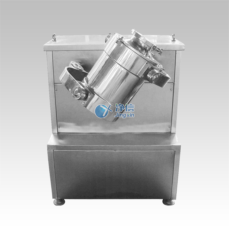 裝料的筒體在主動軸的帶動下,將不同比重的物料做周而復始的平移轉動和翻滾等復合運動,促使物料沿著筒體做環向、徑向、和軸向的三向復合運動,從而實現多種物料的相互流動、擴散、積聚、摻雜,達到均勻混合的目的。整個過程確保無塵化進行,方便清洗。