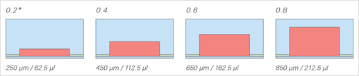 通道的側面:同樣的載玻片不同的通道高度和體積