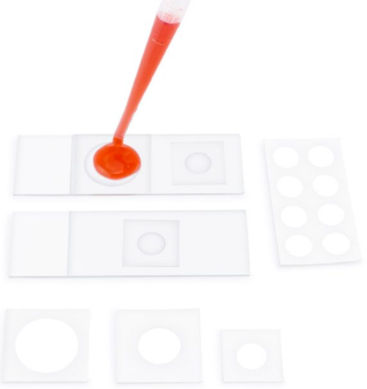 成像墊片是超薄的具有粘性的,撕下來后就可以粘附在蓋玻片或者顯微鏡載玻片上固定樣本,但是避免了樣本被擠壓。墊片的材質和厚度可以根據實際應用而生產。