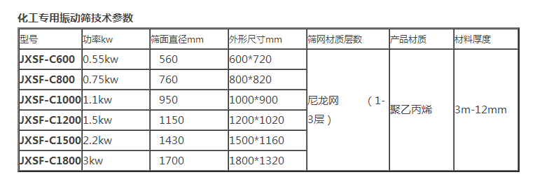 - 產品類型:化工專用振動篩JXSF-C系列